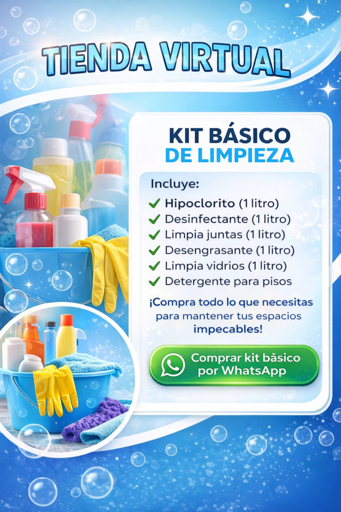 Todo lo que necesitas para mantener tus espacios limpios, desinfectados y organizados en un solo kit.